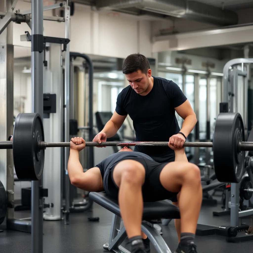 Es fundamental contar con un spotter o compañero de apoyo en ejercicios como press banca o sentadilla.