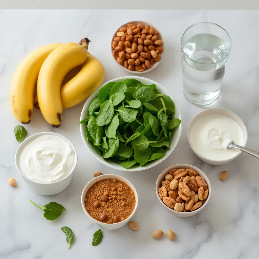 - Batido verde: mezcla de espinaca, plátano y agua mineral.
