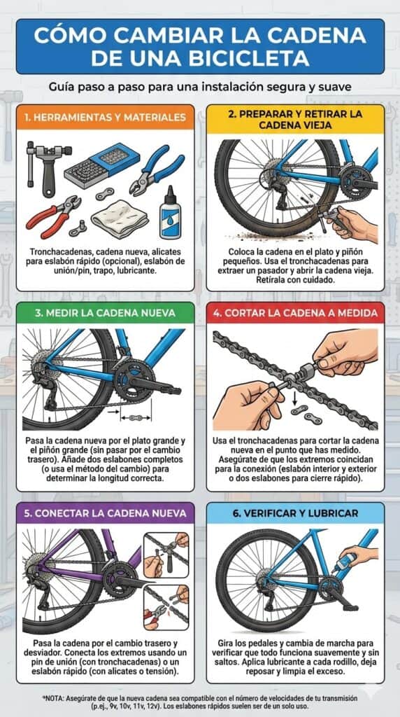 Mantener tu bicicleta en perfecto estado es clave para disfrutar de cada ruta, ya sea en ciudad, montaña o carretera. Uno de los mantenimientos más cruciales —y a menudo subestimados— es el cambio de cadena. Saber cambiar la cadena de tu bicicleta: ¿cuándo y cómo debes hacerlo? no sólo te ahorrará dinero, sino que evitará daños mayores en tu transmisión y asegurará pedaladas más suaves y seguras. En este artículo, descubrirás todo lo necesario para no fallar en el momento del recambio: señales de desgaste, herramientas imprescindibles, pasos detallados y respuestas a las dudas más frecuentes.
