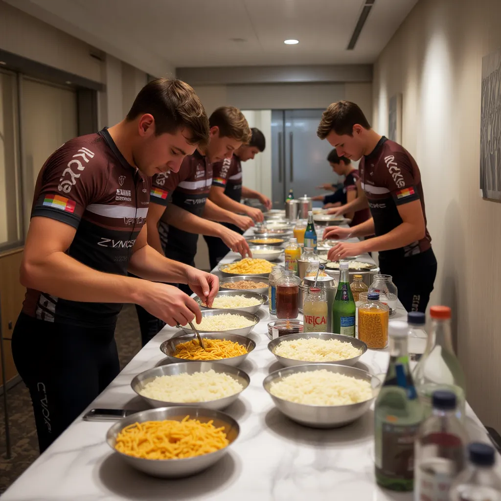 Durante las etapas, los ciclistas profesionales pueden llegar a consumir hasta 450 g de carbohidratos en 5 horas , combinando geles, barritas, bebidas isotónicas y alimentos sólidos controlados por el equipo de nutrición.