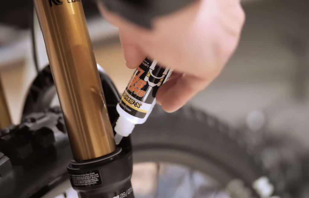 - Baja la anilla de goma (O-ring) al ras del retén de la horquilla o el amortiguador.