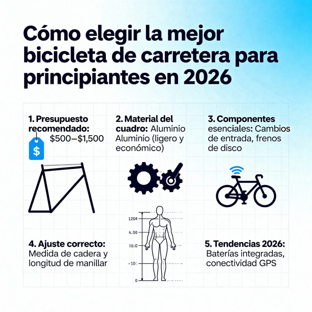 1. ¿Cuál es la diferencia entre una bicicleta de carretera de carbono y aluminio para principiantes? El carbono suele ser más ligero y absorbe mejor las vibraciones, lo que reduce la fatiga en rutas largas, mientras que el aluminio es más económico y robusto, ideal para quienes recién empiezan.