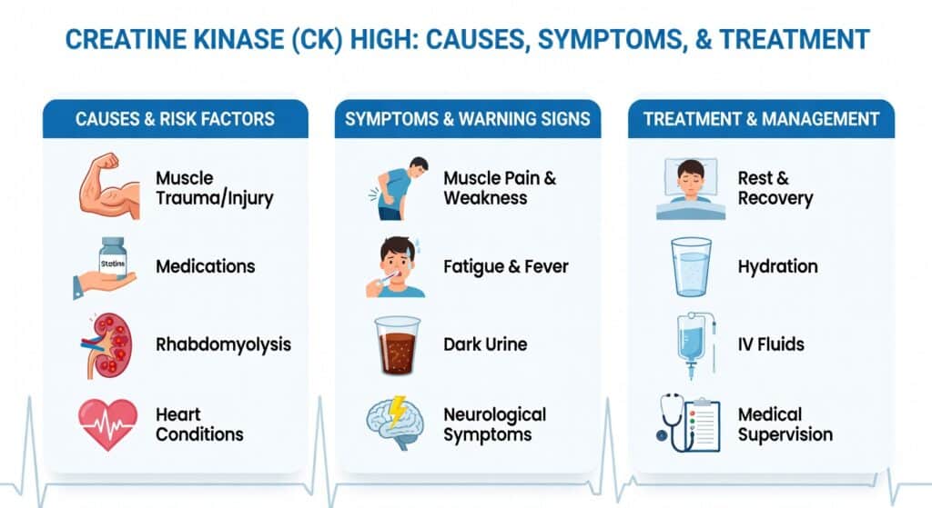 El “tratamiento” real de la creatina quinasa alta es tratar la causa y prevenir complicaciones (sobre todo renales si hay rabdomiólisis). No hay una pastilla universal “para bajar la CK”.