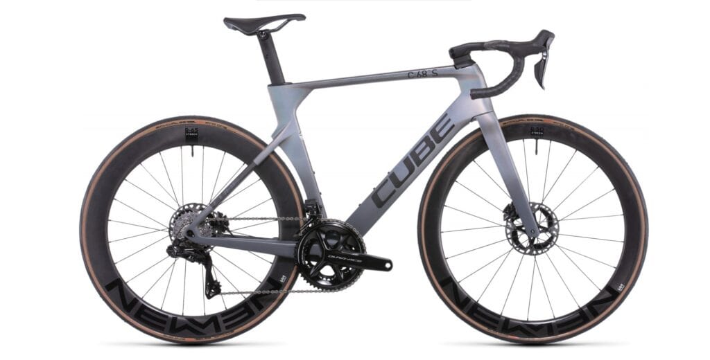 - Ruedas Newmen Streem de carbono, sillín Prologo y manillar integrado Cube.