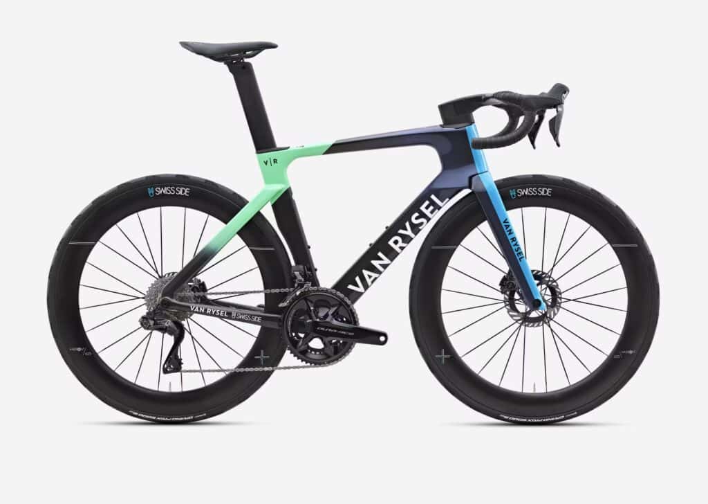 Otra bicicleta “accesible” del pelotón es la Van Rysel RCR-F Pro utilizada por Decathlon-AG2R, cuyo precio ronda los 7.998 euros al público, y aún más asequible en algunas configuraciones básicas(Cyclingnews).