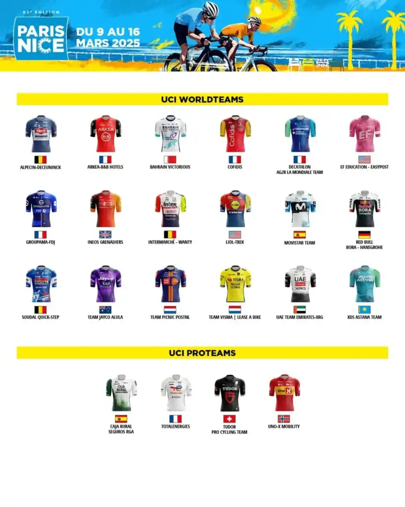 En total, 22 equipos de categoría WorldTour y ProTeams estarán presentes: