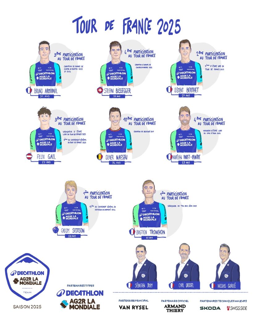 Uno de los grandes activos de la nueva etapa será la joven promesa francesa Paul Seixas, quien con tan solo 18 años ha conseguido sorprender a todo el pelotón con un octavo puesto en la general del Critérium du Dauphiné y actuaciones sobresalientes en el Tour de los Alpes. Formado en la cantera del equipo Decathlon, Seixas encarna la filosofía del patrocinador: apostar por el talento joven y el desarrollo a largo plazo. La hoja de ruta es clara: convertirlo en el futuro líder francés para el asalto al Tour de Francia.