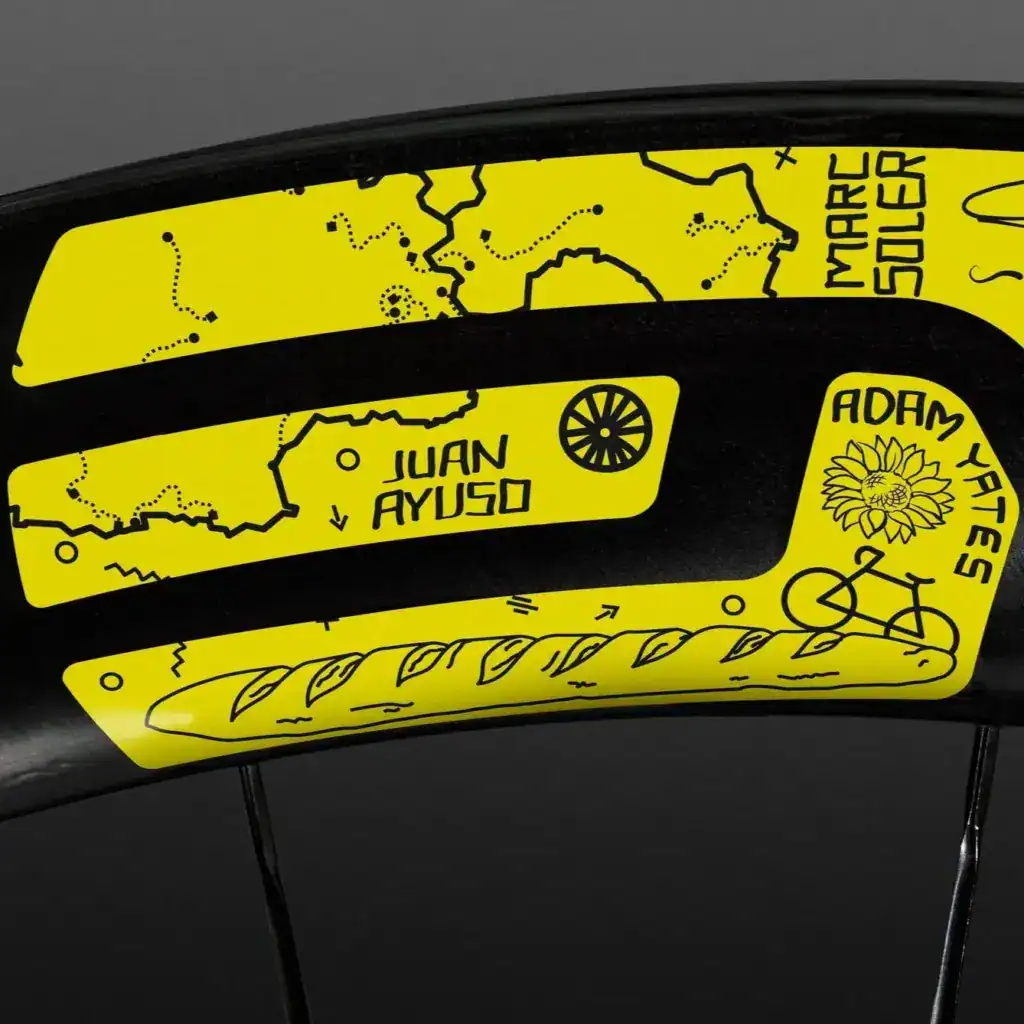 - ENVE SES 4.5 limitada Tour de Francia: misma geometría, decoraciones exclusivas amarillo/arcoíris, disponibilidad solo para coleccionistas y ciertos integrantes del equipo.