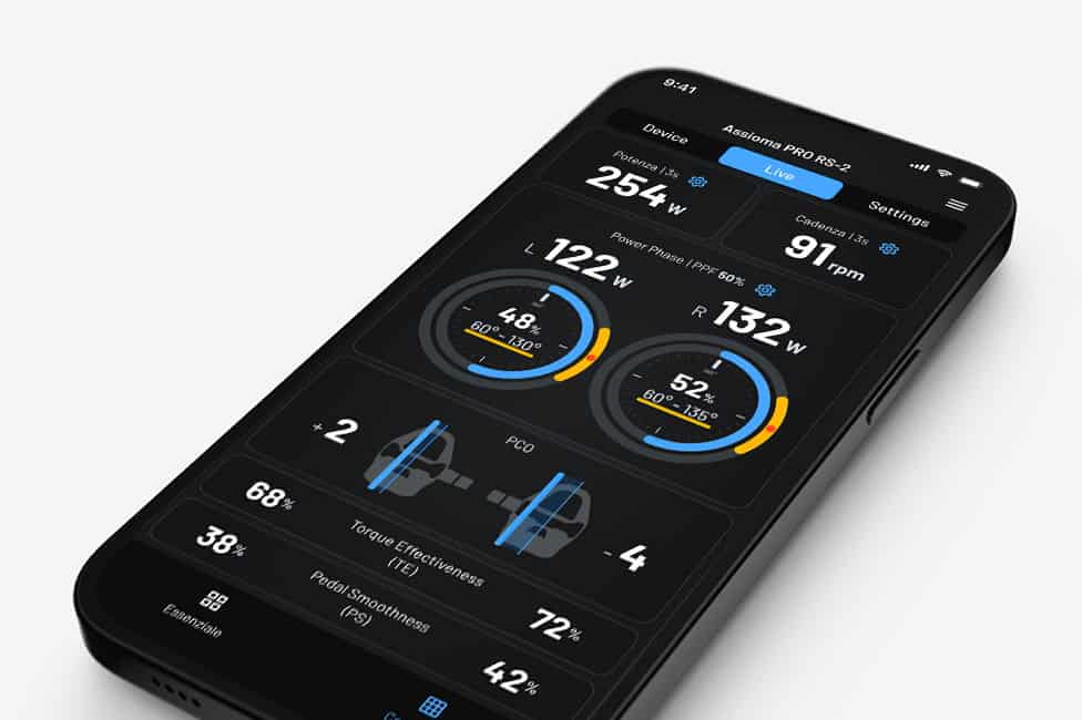 El Favero Assioma PRO RS lleva el análisis a un nuevo nivel. Además de la potencia absoluta y la cadencia, integra: