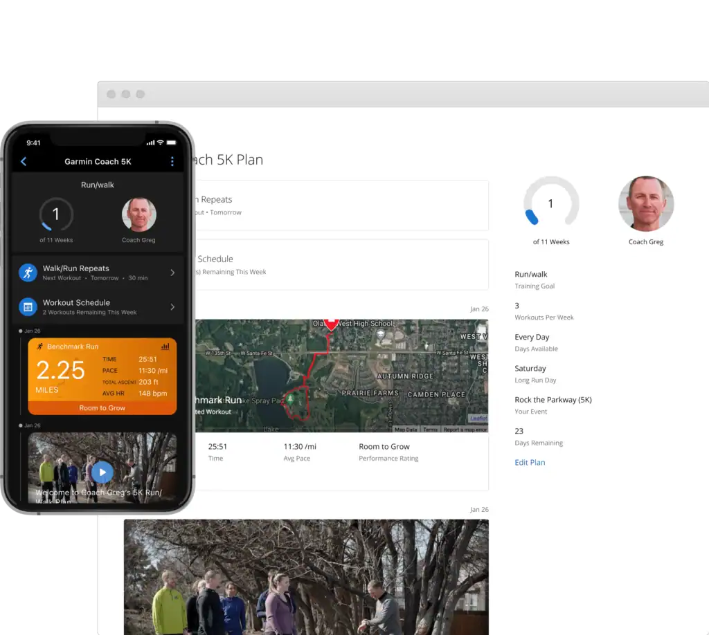 Puedes descargar y seguir entrenamientos estructurados (running, ciclismo, triatlón, fuerza, HIIT, yoga, pilates, entre otros). Destaca la función Garmin Coach, que adapta los entrenamientos en tiempo real a tu progreso y objetivos (5K, 10K, media maratón).