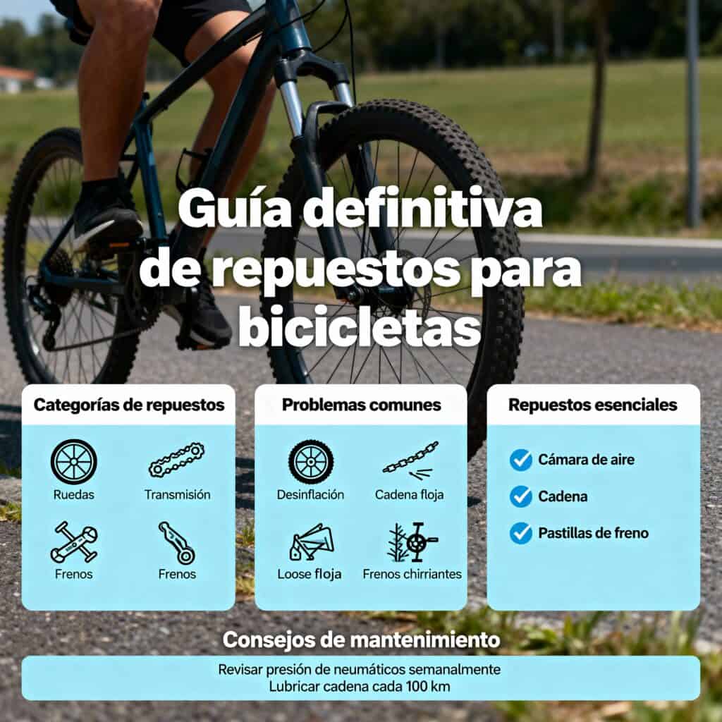 Si alguna vez te has quedado tirado por una cadena rota, unos frenos que chillan o una rueda descentrada, sabes que dominar el mundo de las piezas es casi tan importante como entrenar. Esta Guía definitiva de repuestos para bicicletas: qué necesitas y cómo elegirlo está pensada para que sepas qué repuestos existen, cuáles son prioritarios, cómo comprobar compatibilidades y en qué conviene invertir más. Además, incluye tablas de compatibilidad, vídeos de instalación y enlaces a productos y tiendas para comprar con criterio.