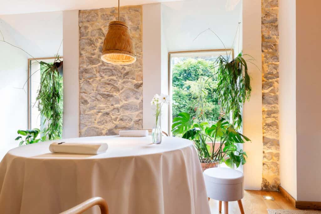 Cada mañana, el menú se ajusta al género disponible. Las estaciones dictan la paleta de sabores: en otoño, la bicicleta de hoznayo deslumbra con propuestas veganas completas gracias a la abundancia de la huerta y el bosque. Es también la época de los guisantes lágrima, el ruibarbo, las fresas y los espárragos verdes, productos que literalmente viajan del campo al plato mientras el cliente inicia su experiencia en el propio huerto antes de sentarse a la mesa.