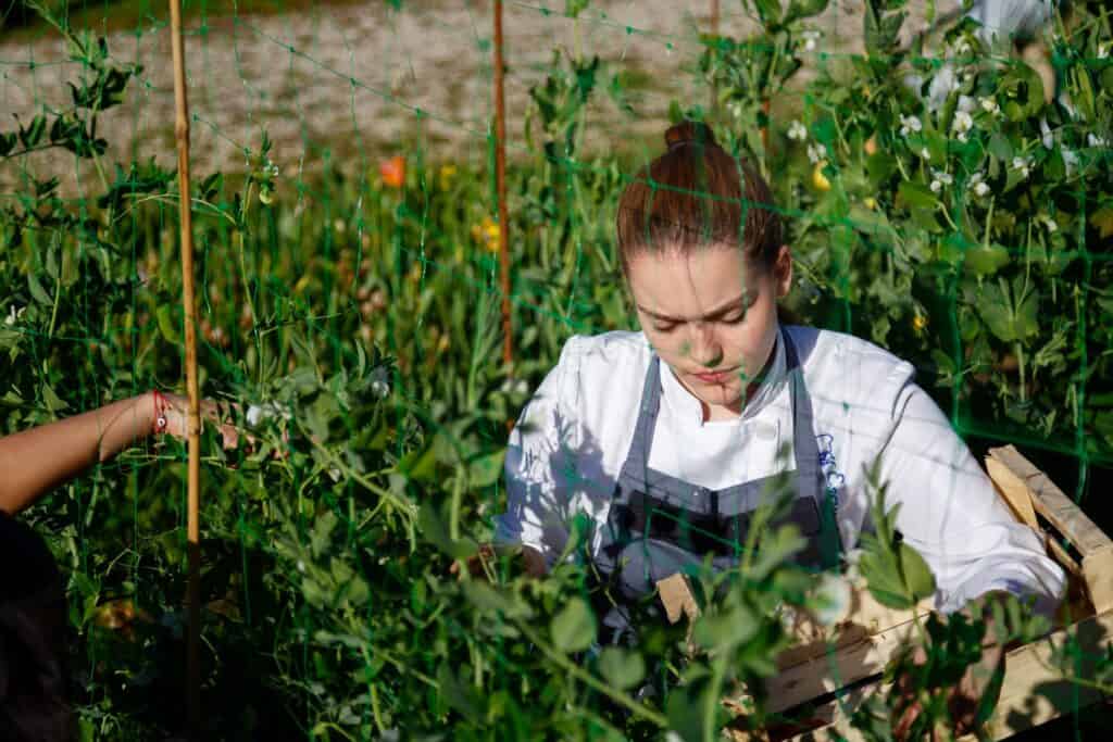 Es el epicentro de su filosofía: casi todos los vegetales, flores y parte de las frutas que se sirven proceden del propio terreno cultivado ecológicamente, diferenciando a la bicicleta de hoznayo de la mayoría de su competencia y ganando reconocimiento con la Estrella Michelin Verde.