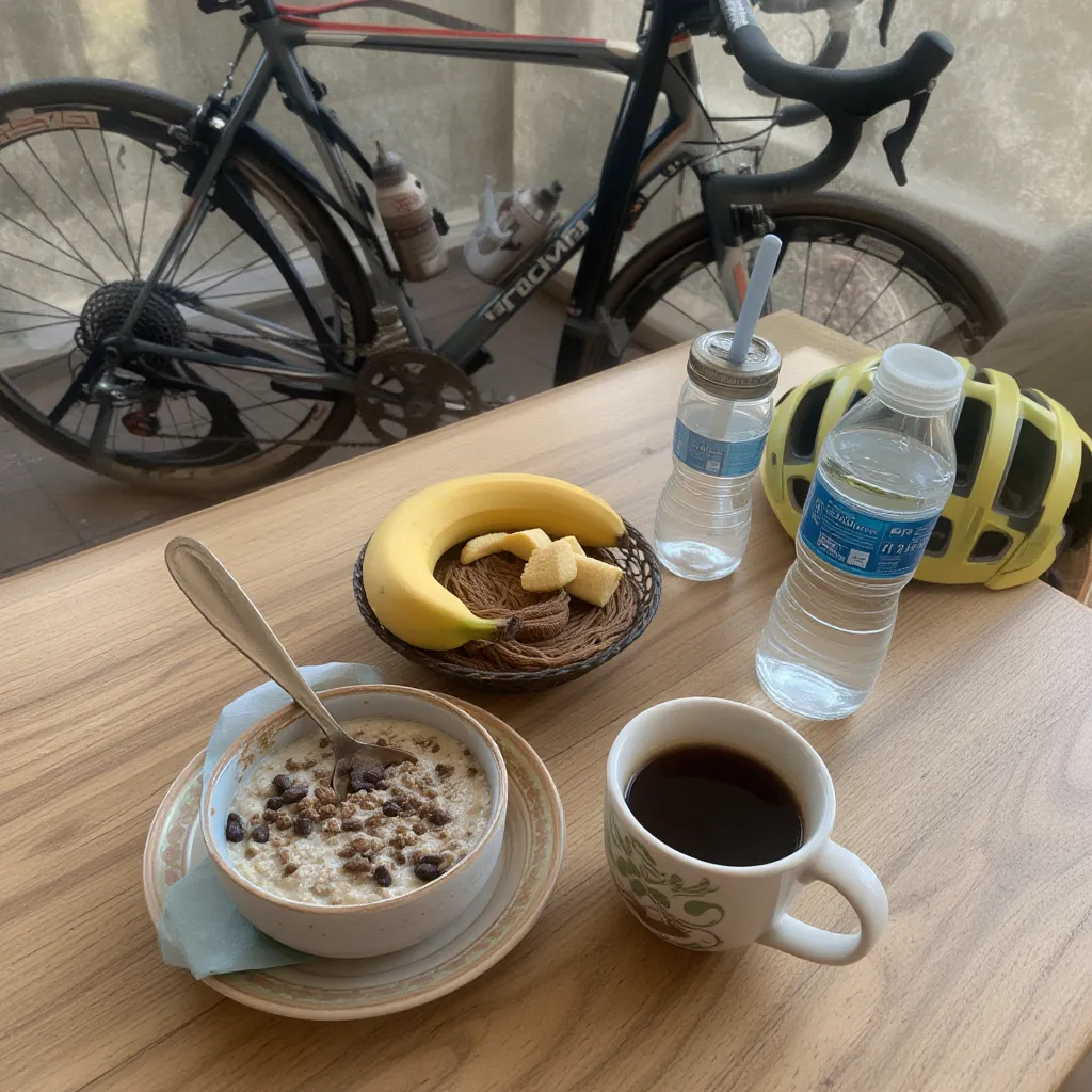 Por la mañana, hidrátate antes de salir; Por la tarde, aumenta la ingesta de agua con electrolitos. En días calurosos, 500–750 ml por hora de pedaleo.