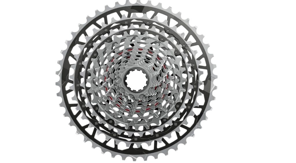 - Cadena de transmisión: Los equipos que usan SRAM, por ejemplo, suelen emplear cassettes cuyo piñón más pequeño es de 10 dientes, lo que permite relaciones mucho más largas (hasta 11,50 metros por pedalada), superando el nuevo límite.
