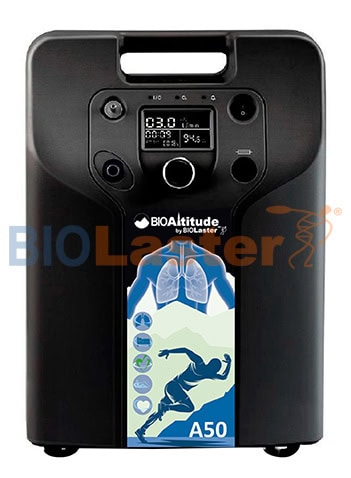 El BioAltitude A50 es un generador de altitud compacta diseñado para simular exposiciones hipóxicas e hiperóxicas. Su estructura portátil (33 × 20 × 50 cm) lo hace ideal para entrenamientos domésticos o pequeños centros.