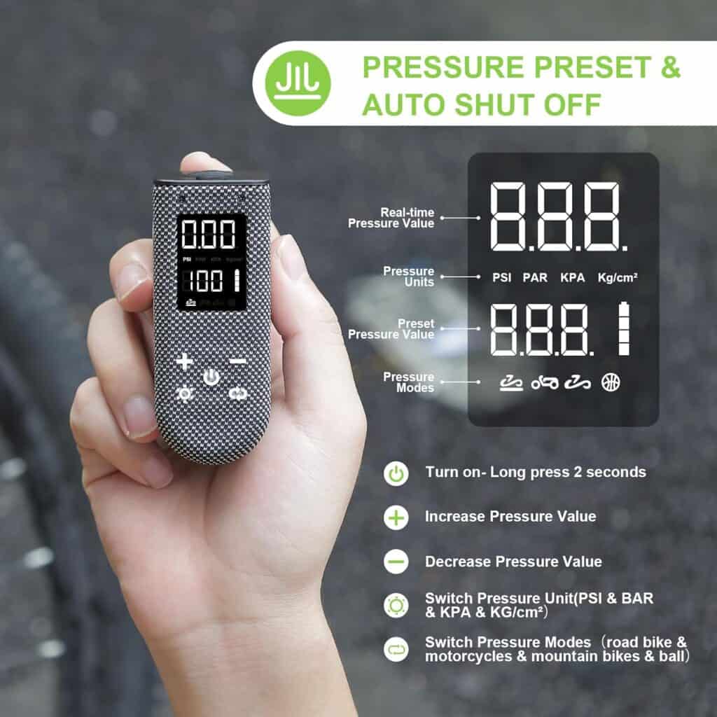 Además de sus funciones básicas, la mini bomba QCHMM cuenta con varias facilidades tecnológicas que mejoran la experiencia del usuario. Entre ellas destaca la función de memoria, que guarda la presión configurada, y los diferentes modos de presión preestablecidos para diversos usos: bicicleta de carretera, bicicleta de montaña, moto y balón.