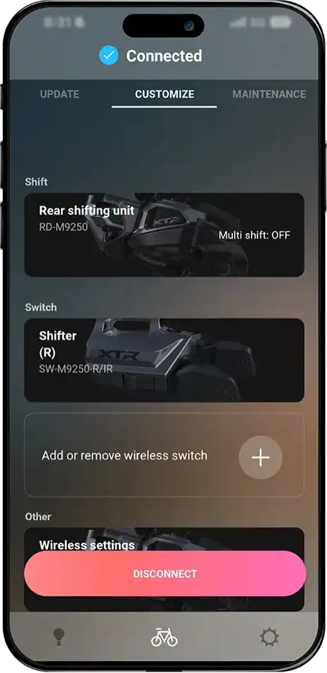 - App E-Tube Project: permite ajustar sensibilidad de cambios, número de coronas por click, asignar funciones a botones y actualizar firmware (imprescindible para usuarios avanzados y equipos técnicos).