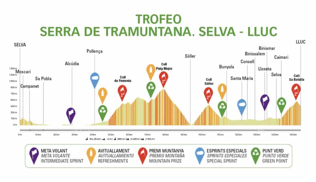El viernes 30 de enero, el Trofeo Serra de Tramuntana lleva a los corredores desde Selva hasta el Santuari de Lluc, cubriendo 154,3 km de terreno montañoso. El perfil incluye dos ascensiones emblemáticas: el Coll de Sóller (repetición) y el Coll de Sa Batalla, una subida de 8,4 km al 5 % que se sitúa a solo 6 km de la meta, creando una zona de alta tensión donde los escaladores pueden lanzar su movimiento definitivo.