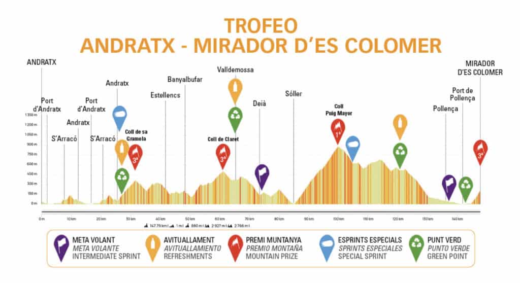 | Sábado 31 ene | Trofeo Andratx‑Pollença | Andratx – Mirador d’Es Colomer (Pollença) | 147,8 km | Ruta |