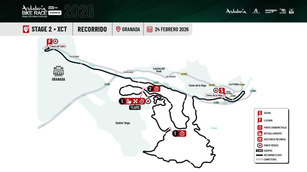 La parte intermedia incluye un circuito XCO en Huétor Vega, con zigzags, rock gardens y cambios de ritmo constantes, ideal para especialistas en manejo técnico.