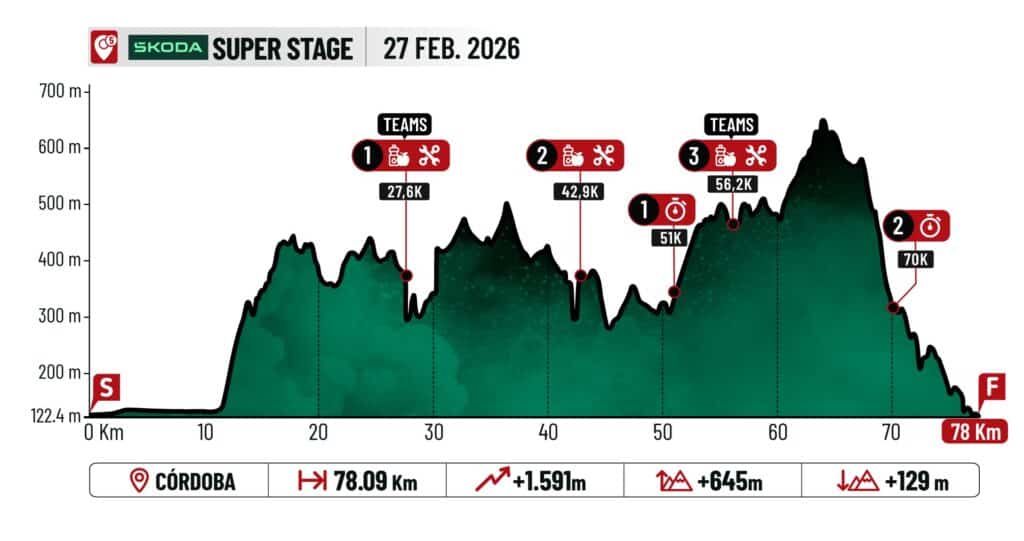 Conocida como la Skoda Super Stage, esta es la más larga y esperada del trazado. Desde la Avenida Al-Nasir, la ruta se adentra en el canal del Guadalmellato y sube por la Vereda de la Canchuela hasta Trasierra, un recorrido perfecto para los amantes del pedaleo constante.