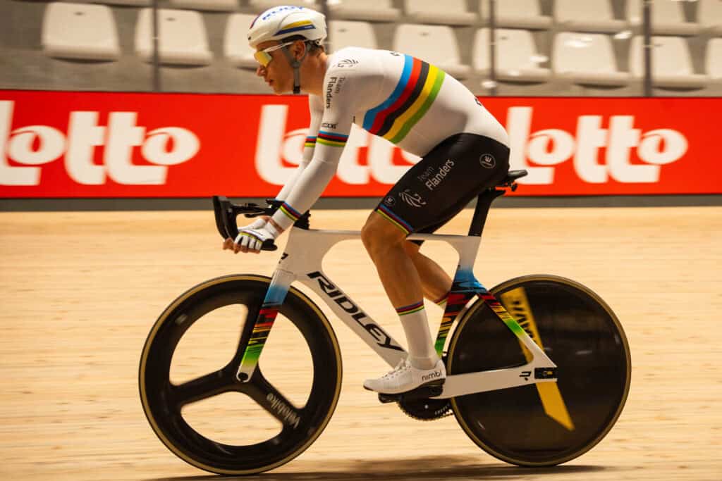 "¡Estoy muy contento con la Omnium Fast!", dijo Lindsay De Vylder. "Ridley me invitó a su sede para darme una explicación sobre esta bicicleta de pista y también tuve la oportunidad de dar mi opinión. El resultado es una bicicleta ultra rápida que responde perfectamente en el pelotón. Con el diseño especial del arco iris, es claro que soy el campeón mundial en esta disciplina. Con esto, el camino hacia Los Ángeles se ha abierto con éxito, ¡y espero vivir muchos más momentos destacados con la Omnium Fast!"