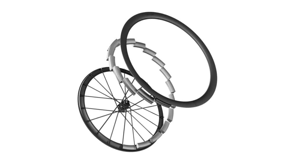 La disposición transversal y la integración directamente con los anclajes de los rayos genera una rigidez lateral superior, reduciendo significativamente la flexión y mejorando la transferencia de potencia y el comportamiento dinámico frente a cargas extremas. El resultado es una rueda ultrarrígida, robusta aunque ligerísima, y con un comportamiento mucho más predecible en descenso y esprint.