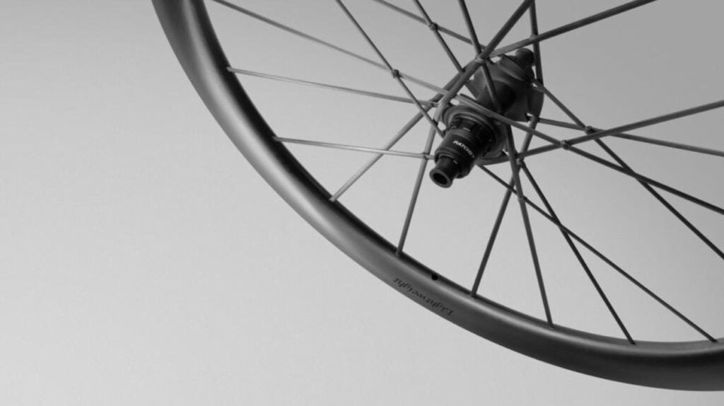 Lightweight rompe con su propio estilo histórico de acabado trenzado ("twill") y apuesta ahora por el carbono unidireccional mate, que revela la precisión del trabajo de capas sobre cada costilla y radio. El resultado es una imagen más sobria y tecnológica, acorde con las tendencias estéticas top del ciclismo actual.