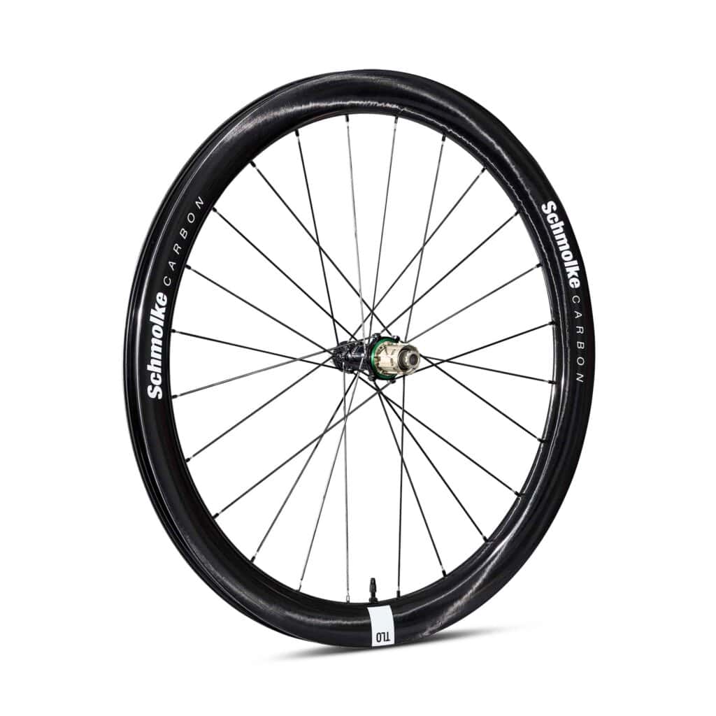 Cada detalle en las Schmolke TLO 50 responde a la filosofía “más fuerte, más ligero, más eficiente”. Los radios de carbono no son simplemente una rareza técnica; aportan una reducción de peso de 1,8 g por radio frente a los metálicos DT Swiss Aerolite, además de una elasticidad controlada que mejora la durabilidad y el confort de marcha.