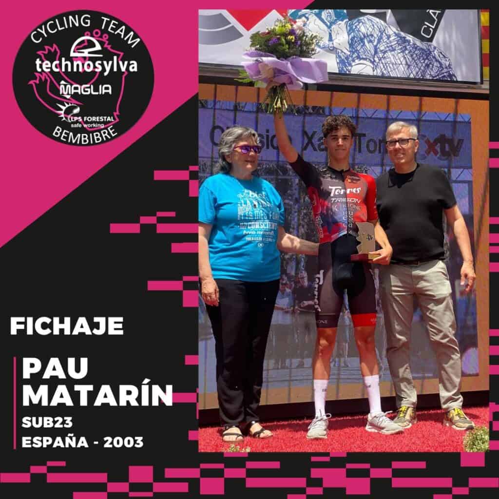 Por su parte Pau Matarín aportará experiencia en el pelotón élite sub23 al Technosylva Maglia Bembibre Cycling Team en su tercer año en la categoría. El ciclista catalán, especialista en etapas de montaña, ha progresado muy positivamente en las últimas temporadas dando un paso adelante en ambición y buenas actuaciones. Resaltar del año que cerramos las buenas clasificaciones en el Gran Premio Vila-Real y en la Ronda del Maestrazgo de Benicarló; pero en especial el 2º puesto de la clasificación de jóvenes y 5º de la general en el Circuito Montañés, el 2º lugar de la montaña en la Volta a Galicia, tras haber vestido el maillot de líder en varias etapas, y el 3er puesto en la Clàssica Xavi Tondo.