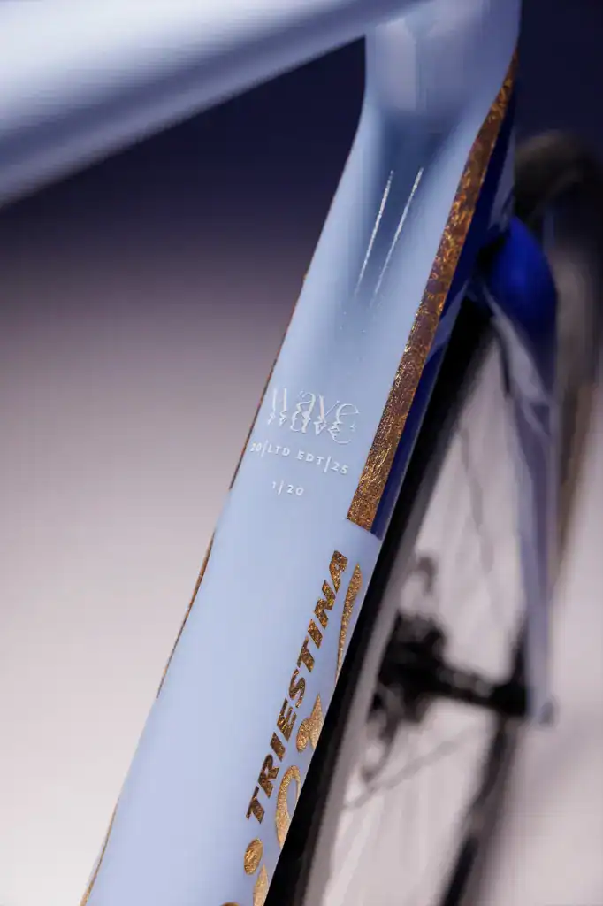 Solo 20 unidades de la Wilier Verticale SLR Wave existen en todo el mundo. Cada una ha requerido días de trabajo meticuloso, un proceso manual —tanto en la pintura como en los detalles dorados— ajeno por completo a la cadena industrial. Esto rompe con el molde habitual de producción en serie y convierte cada ejemplar en una pieza única, imposible de reproducir. El resultado es una bicicleta que trasciende el mero objeto deportivo y se transforma en una declaración de coleccionismo y arte de élite.